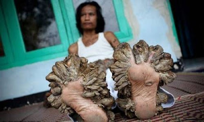 رجل تتحول أطرافه إلى جذع شجرة يحكى بأنّ هناك رجل ذات جنسية إندنيسية يسمى ديدي عمره نحو 37 عاماً يعيش هذا الرجل في جنوب جاكرتا وهويعاني من الإصابة بمرض نادر تسبب في إحداث طفرة جينية في جسده وهذا أدى إلى إصابته بمرض جلدي وراثي قد يتسبب في إصابة جلده بالسرطان ومرضه يسمى نسيج البشرة الثؤلولي وواحده من أعراضه وجود تورم على الجلد مع وجود البقع التي تبدوا ذات مظهر سيئ كما أنّ هناك تقشر دائماً في الجلد مع وجود القرح والصديد مع التقيحات الجلدية الدائمة وهذا المرض النادر يصيب نحو واحد بين كل مليون شخص ولقد كان منهم هذا الرجل الإندونيسي ولقد تعرض هذا الرجل منذ صغره إلى الإصابة بفيروس وهو في الخامسة عشر من عمره وهذا المرض قد تسبب في نقص المناعة المكتسبة لذا فلقد تحولت أطرافه إلى جذع شجرة بالتدريج حيث أنّ اليدين كانتا شبيهتين بالفروع ولقد كان الرجل يشبه الشجرة ولقد كانت وظيفة هذا الرجل في مهنة الصيد ولقد تم إجراء الكثير من العمليات الجراحية لهذا الرجل غير أنّ جميعها قد باء بالفشل حيث أنّ أطراف الشجرة تعود مرة أخرى للنمو ولقد تحسنت حالة هذا الرجل بعدعناية أحد الأطّباء به حيث أنّ الله قد مكنه من إجراء عملية له قد تسببت في التخفيف من حدة ماكان يعاني منه هذا الرجل الشجرة.